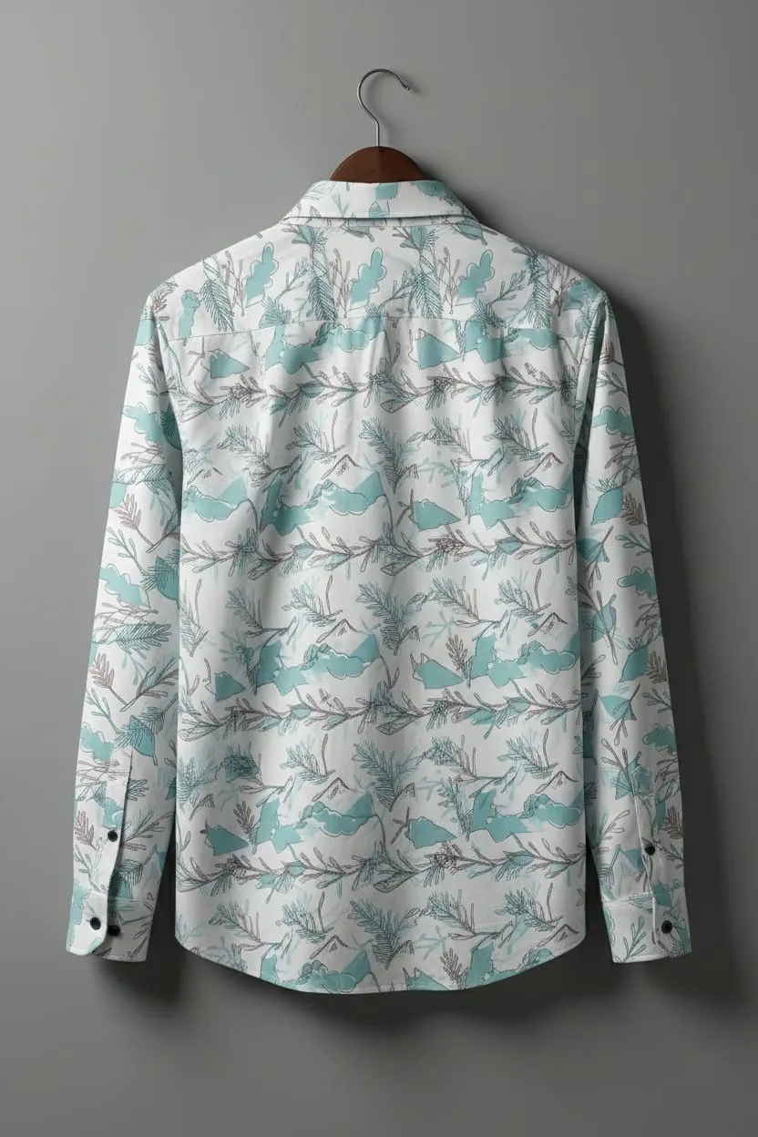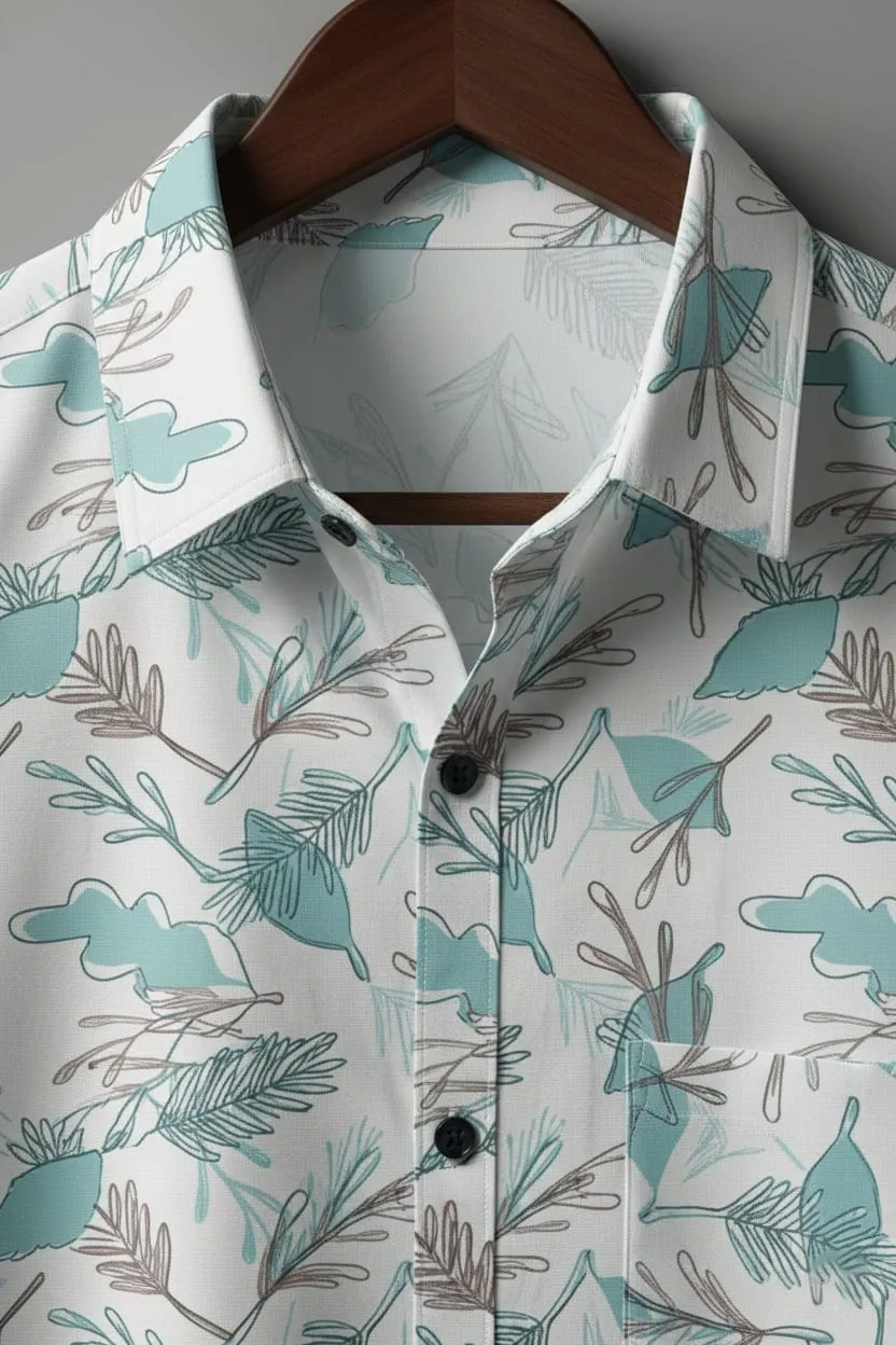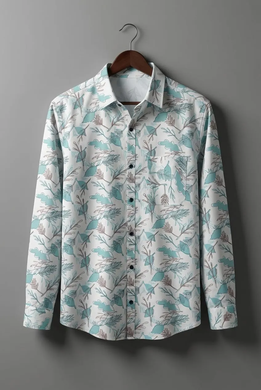 Premium cotton mix nylon full-sleeve shirt featuring a modern leaf print. Lightweight, breathable, and wrinkle-resistant for all-day comfort and style.